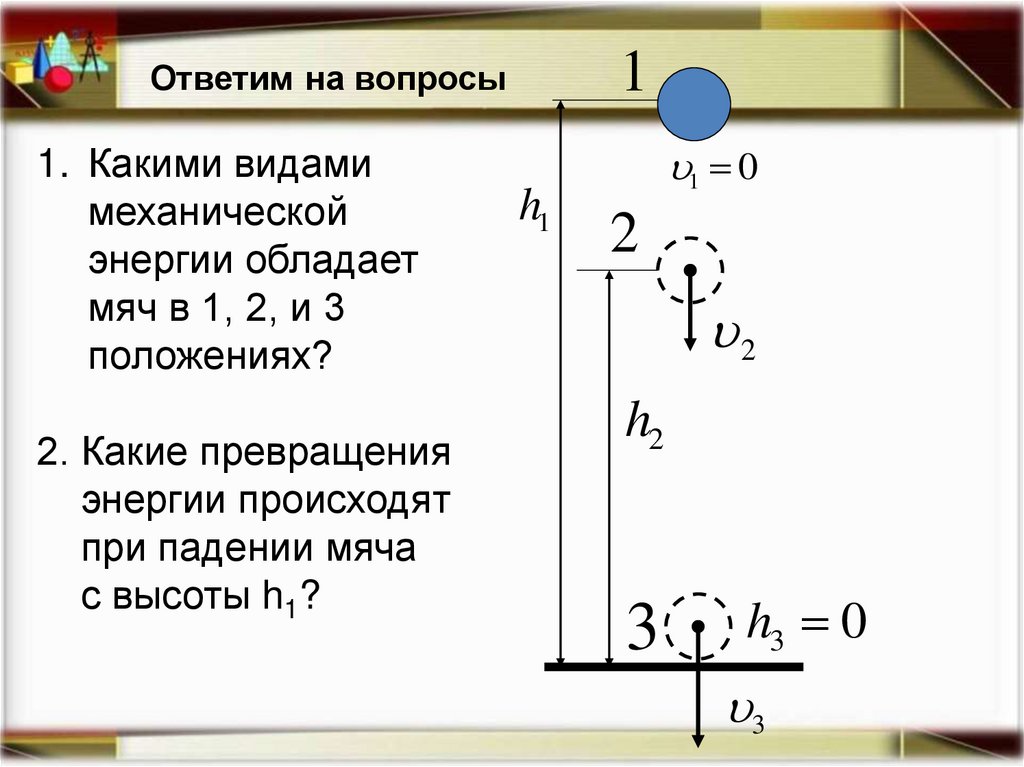 36. 9. Упавший и отскочивший от земли мячик подпрыгивает на меньшую высоту, чем та, с которой он упал. Чем это объясняется?