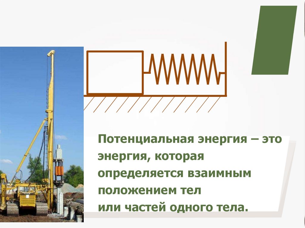 38. 11. Тяжелый молот падает на сваю и вбивает ее в землю. В этом процессе происходит преобразование