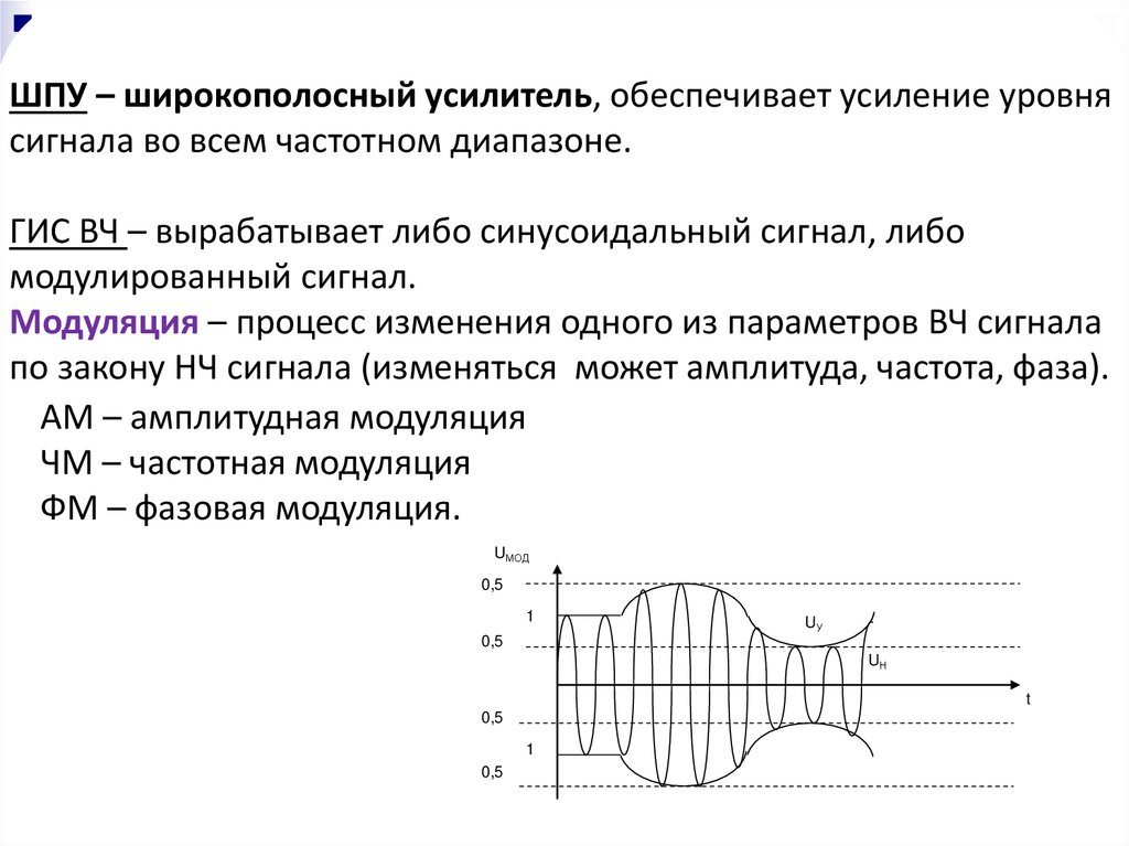 УМ – усилитель мощностиОбеспечивает усиление сигналов по