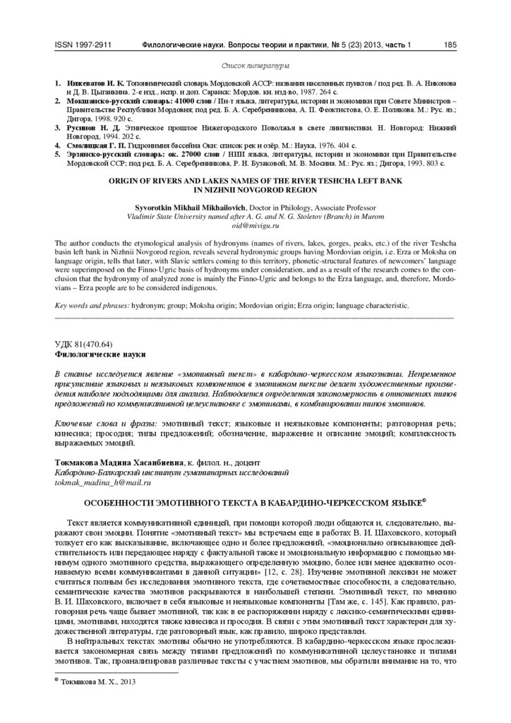 Тамбов: Грамота, 2013. № 5 (23): в 2-х ч. Ч. I. C. 185-187. ISSN 1997-2911.