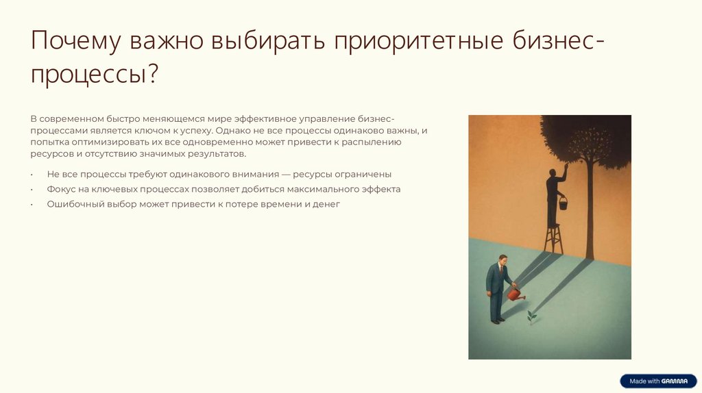 Почему важно выбирать приоритетные бизнеспроцессы?В современном быстро меняющемся мире эффективное управление бизнеспроцессами является ключом к успеху. Однако не все процессы одинаково важны, и