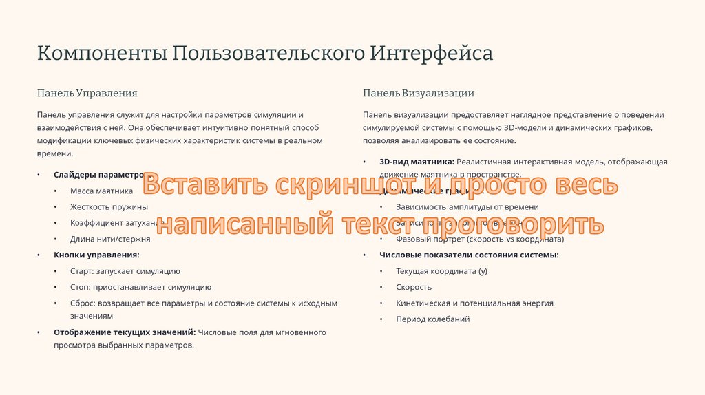 управления (кнопки, слайдеры), отображение графиков и числовых
