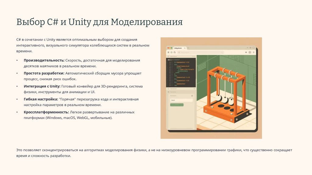 Выбор C# и Unity для МоделированияC# в сочетании с Unity является оптимальным выбором для создания
