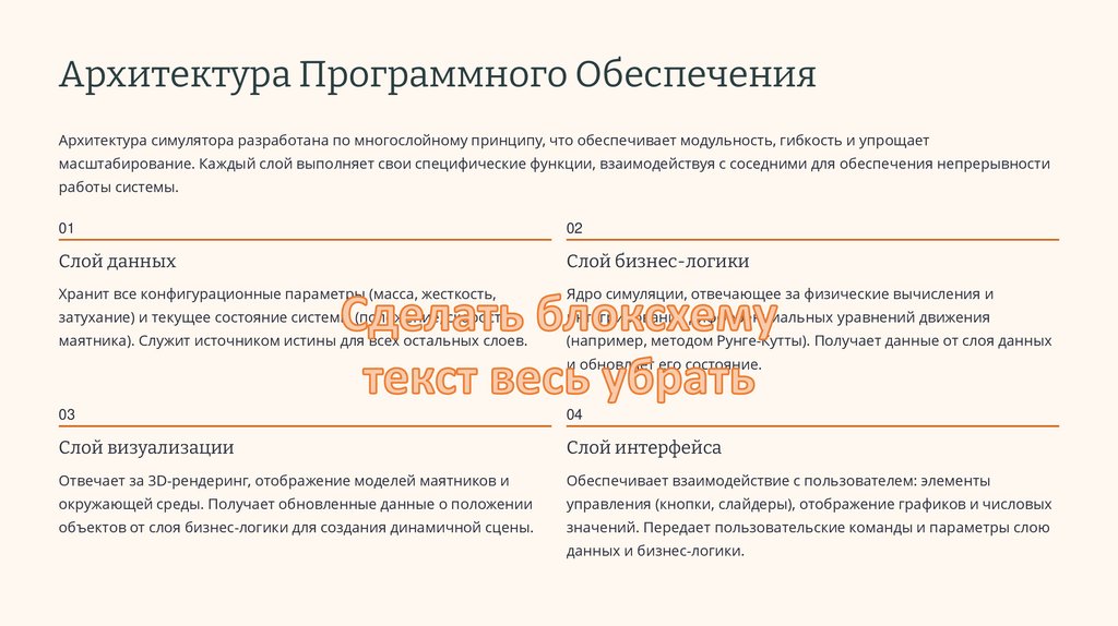 Архитектура Программного ОбеспеченияАрхитектура симулятора разработана по многослойному принципу, что обеспечивает модульность, гибкость и упрощает