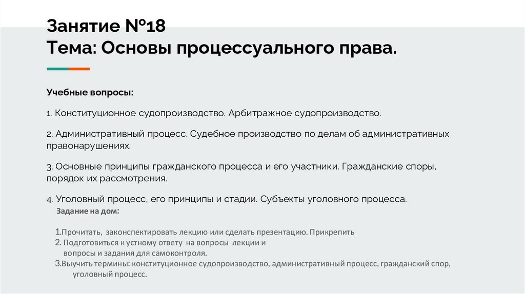 1. Занятие №18 Тема: Основы процессуального права.