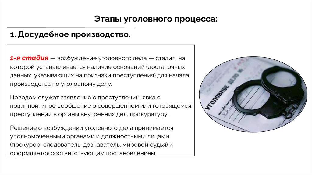 возбуждение уголовного дела;