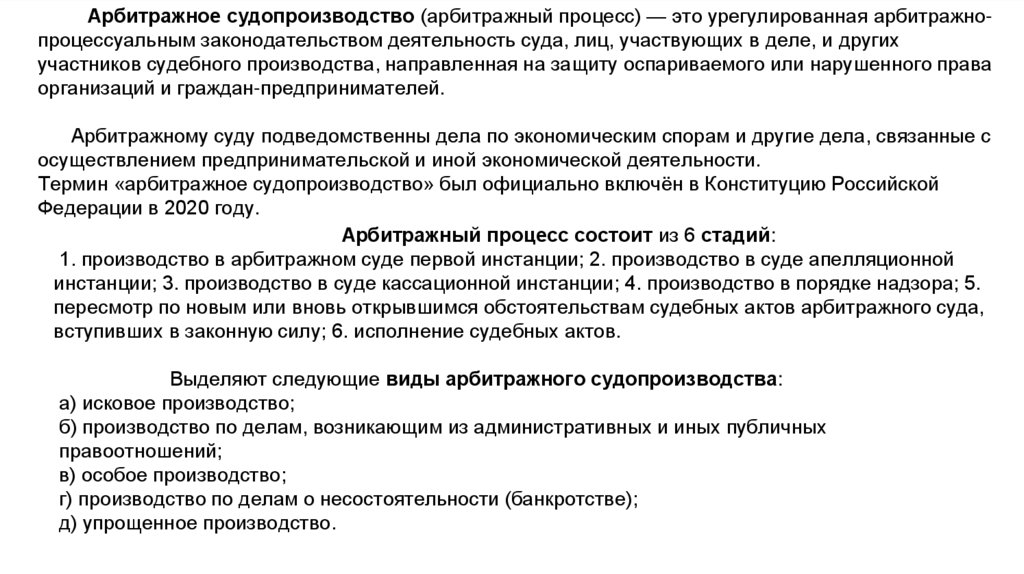 Термин «арбитражное судопроизводство» был официально включён в Конституцию Российской