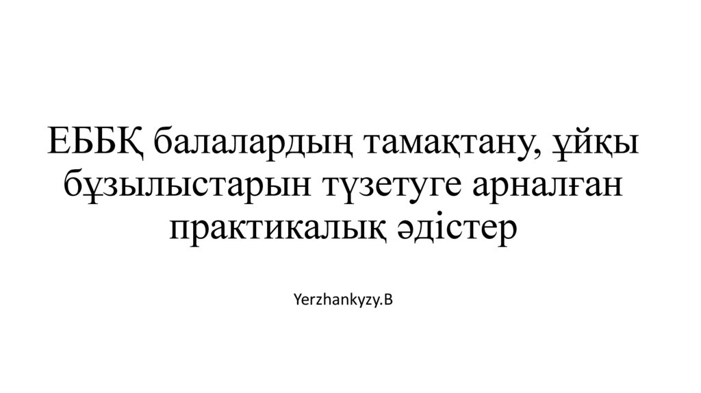 1. ЕББҚ балалардың тамақтану, ұйқы бұзылыстарын түзетуге арналған практикалық әдістер