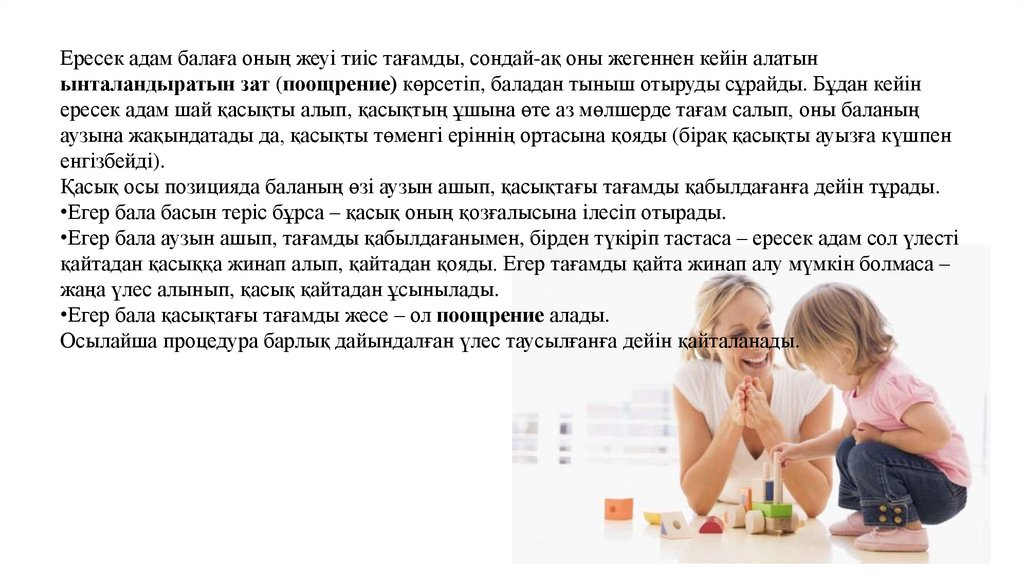 •Егер бала қасықтағы тағамды жесе – ол поощрение алады.