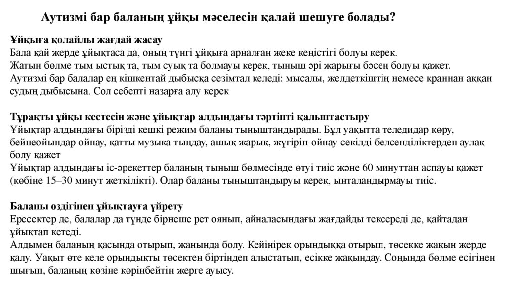 Аутизмі бар баланың ұйқы мәселесін қалай шешуге болады?Ұйқыға қолайлы жағдай жасау
