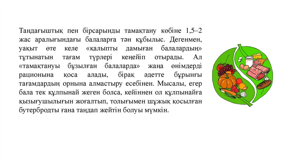 Таңдағыштық пен бірсарынды тамақтану көбіне 1,5–2жас аралығындағы балаларға тән құбылыс. Дегенмен,
