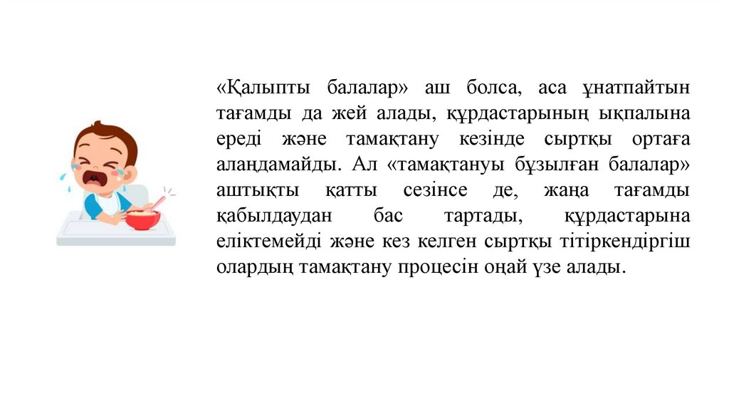 «Қалыпты балалар» аш болса, аса ұнатпайтынтағамды да жей алады, құрдастарының ықпалына