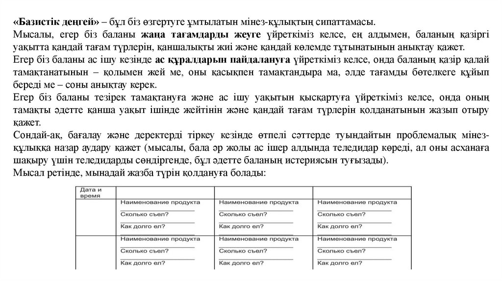 уақытта қандай тағам түрлерін, қаншалықты жиі және қандай көлемде тұтынатынын анықтау қажет.