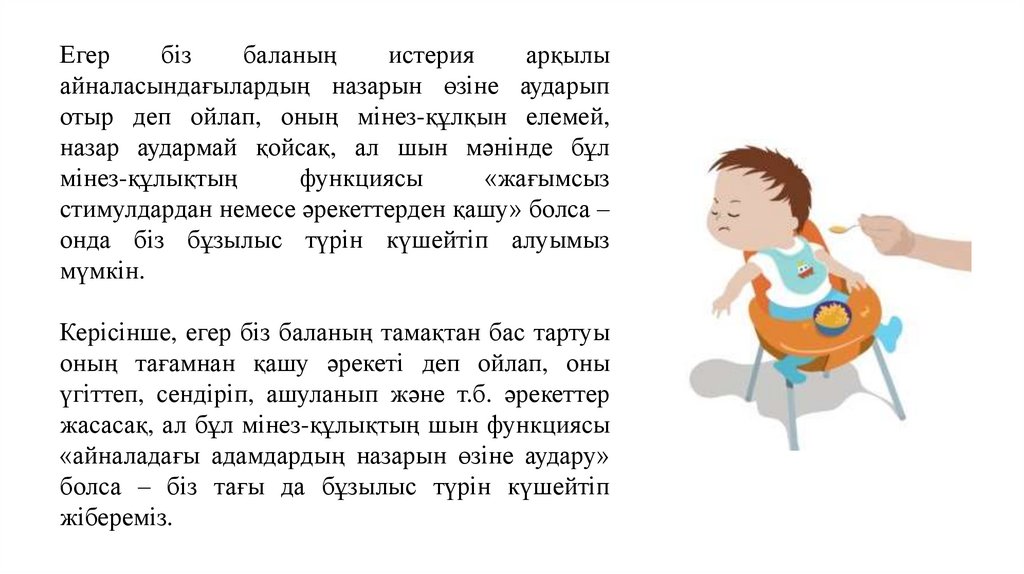 барысында жиі болатын истерикалық реакциялар, сондайақ тағамды тым баяу қабылдау. Ас ішудің 30 минуттан