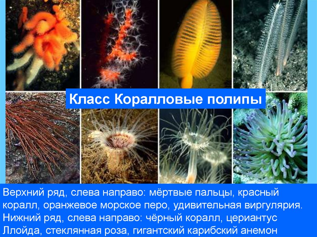 Класс Коралловые полипыВерхний ряд, слева направо: мёртвые пальцы, красный