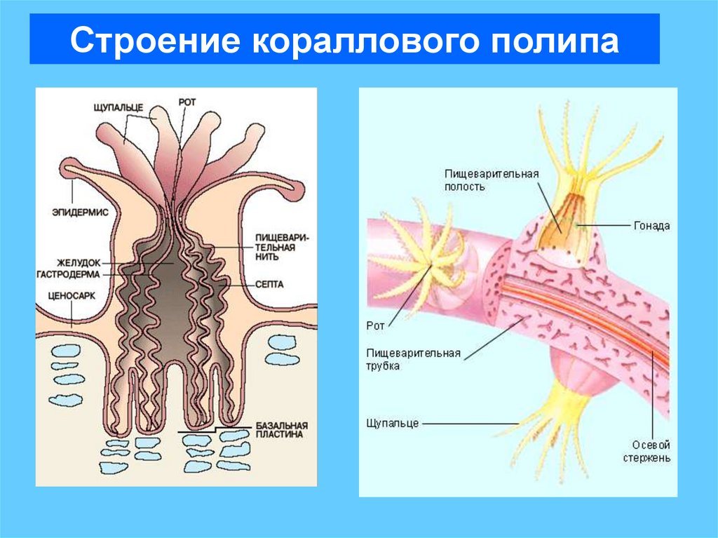 На больших глубинах обитаютвосьмилучевые коралловые полипы