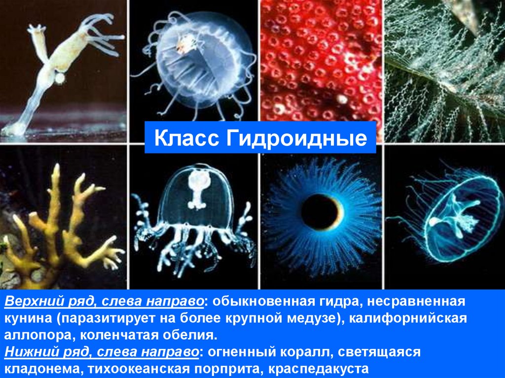 Класс ГидроидныеВерхний ряд, слева направо: обыкновенная гидра, несравненная