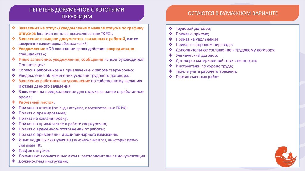 ПЕРЕЧЕНЬ ДОКУМЕНТОВ С КОТОРЫМИПЕРЕХОДИМ