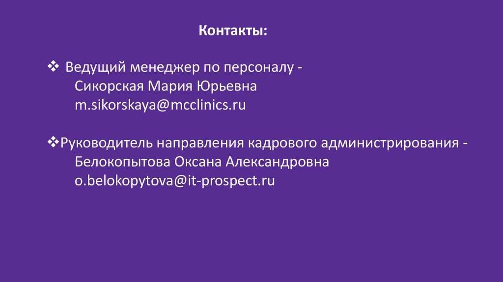 Контакты:Ведущий менеджер по персоналу Сикорская Мария Юрьевна