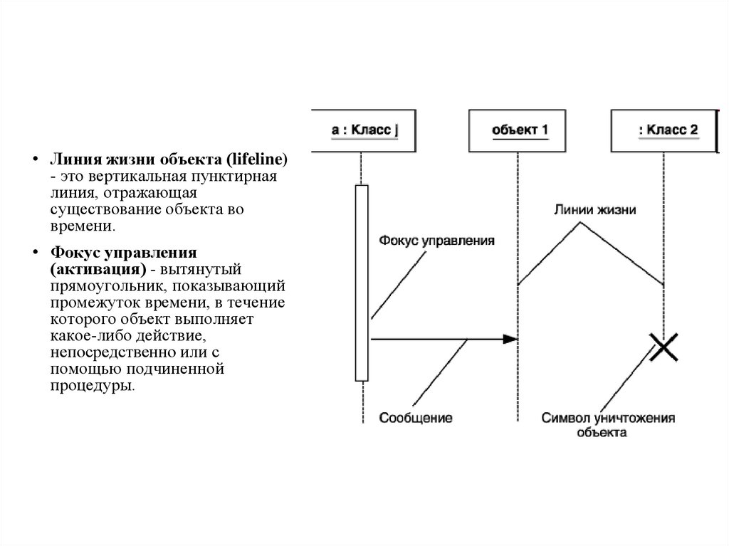 • Линия жизни объекта (lifeline)- это вертикальная пунктирная