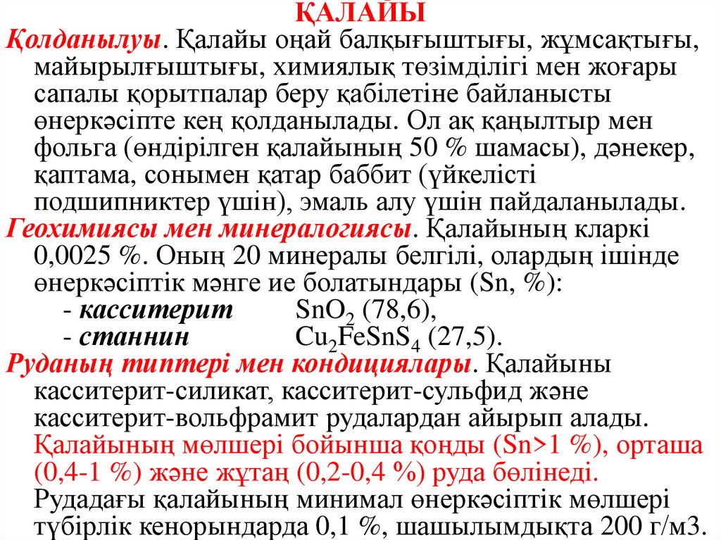 өнеркәсiптiк мәнге ие болатындары (Sn, %):