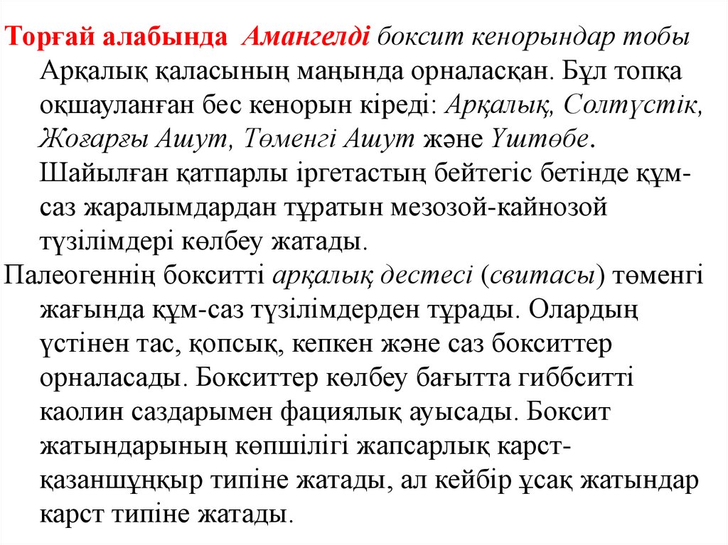 байланысты. Мәселен, сiлтiлi нефелин таужыныстарда