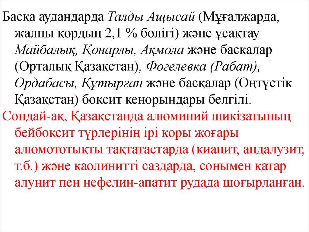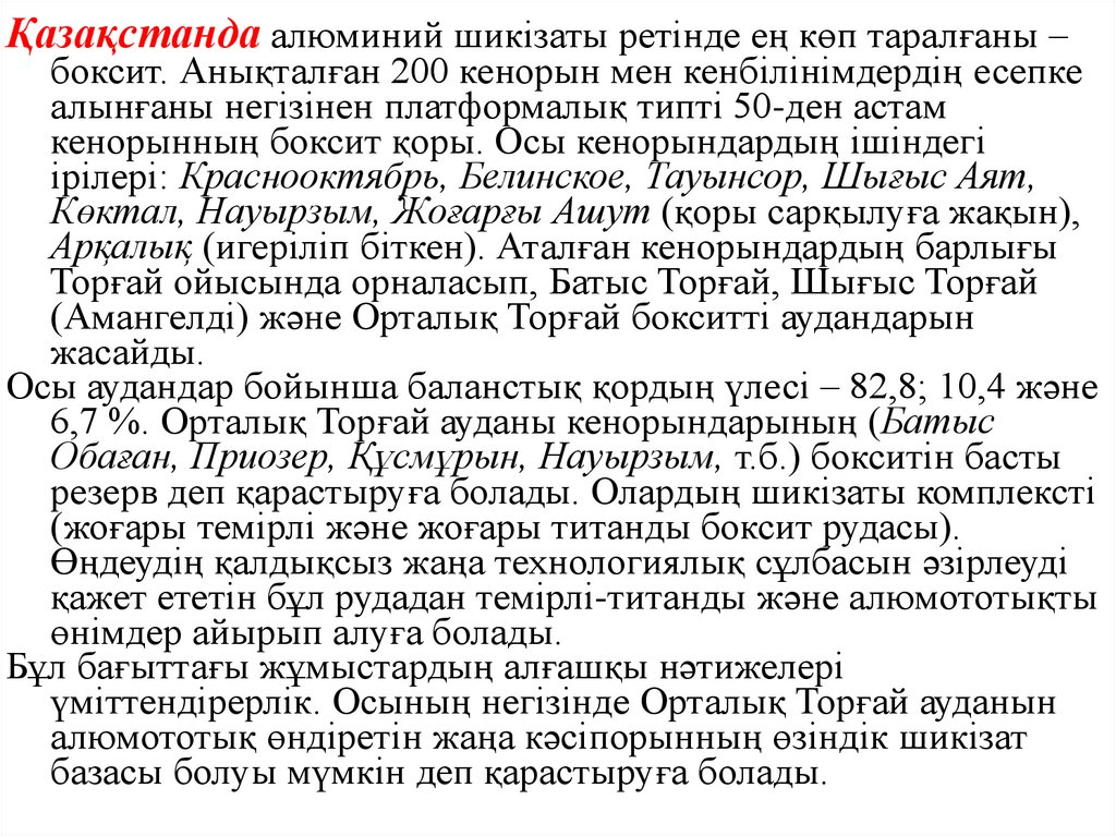 өнеркәсiптiк мәнге ие болатыны (Al2O3, %):