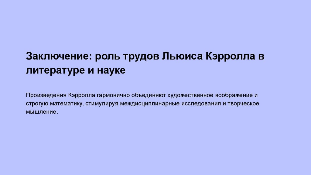 Заключение: роль трудов Льюиса Кэрролла влитературе и науке