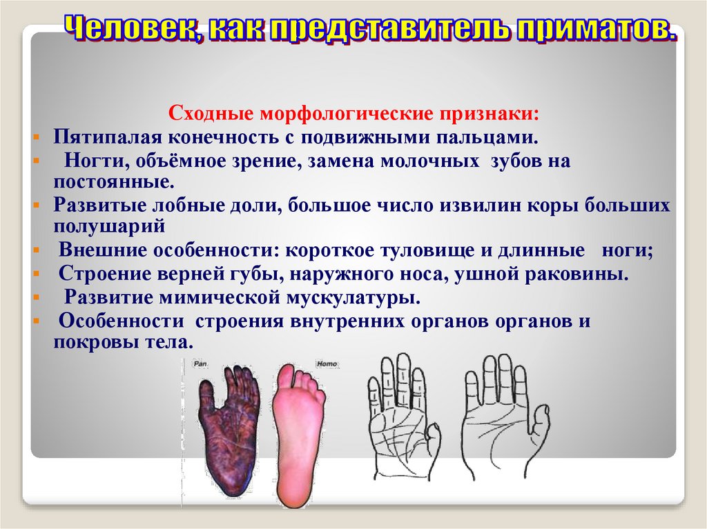 Сходные морфологические признаки:Пятипалая конечность с подвижными пальцами.
