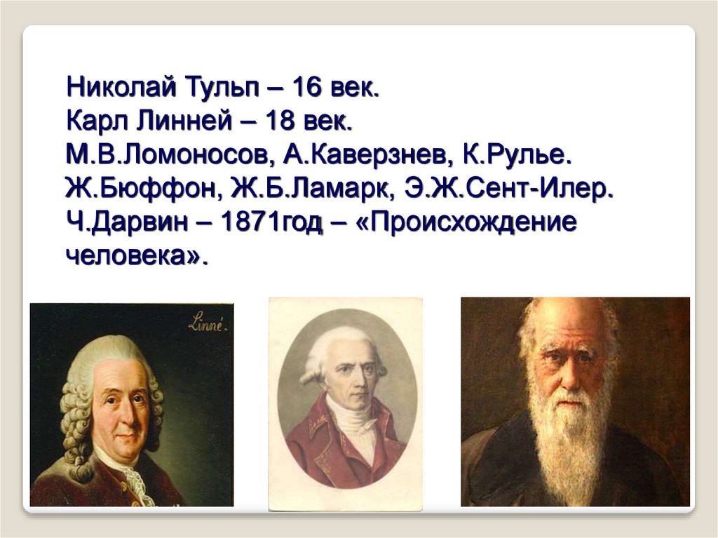 Ж.Бюффон, Ж.Б.Ламарк, Э.Ж.Сент-Илер.