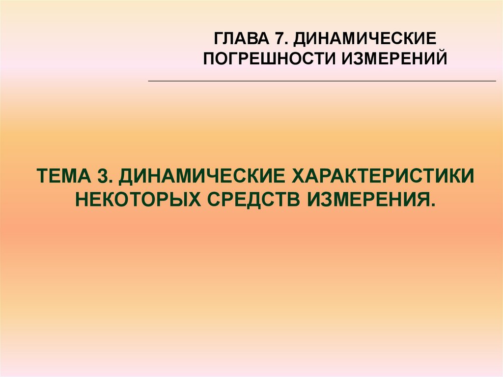ГЛАВА 7. ДИНАМИЧЕСКИЕ ПОГРЕШНОСТИ ИЗМЕРЕНИЙДИНАМИЧЕСКИЕ ХАРАКТЕРИСТИКИ НЕКОТОРЫХ СРЕДСТВ ИЗМЕРЕНИЯ.