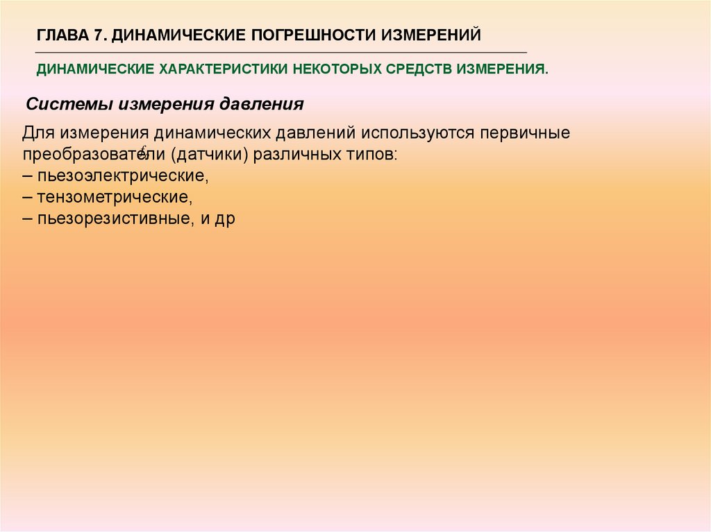 ГЛАВА 7. ДИНАМИЧЕСКИЕ ПОГРЕШНОСТИ ИЗМЕРЕНИЙРАСЧЕТ ДИНАМИЧЕСКИХ ПОГРЕШНОСТЕЙ ИЗМЕРЕНИЯ.
