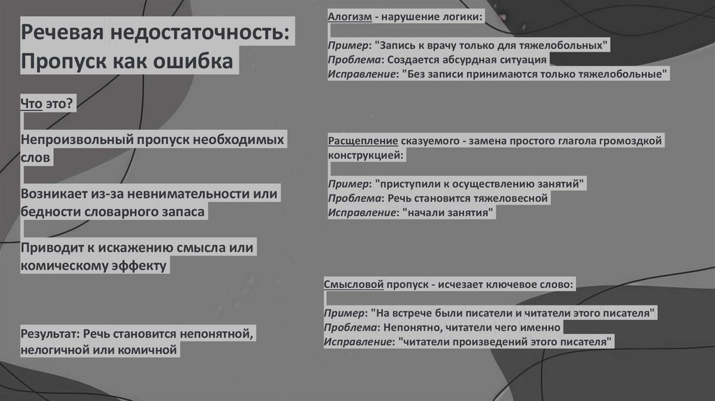 Речевая недостаточность:Пропуск как ошибка