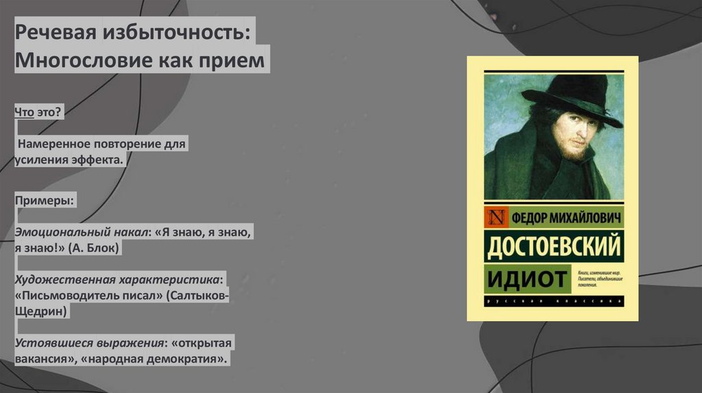 Речевая избыточность:Многословие как прием