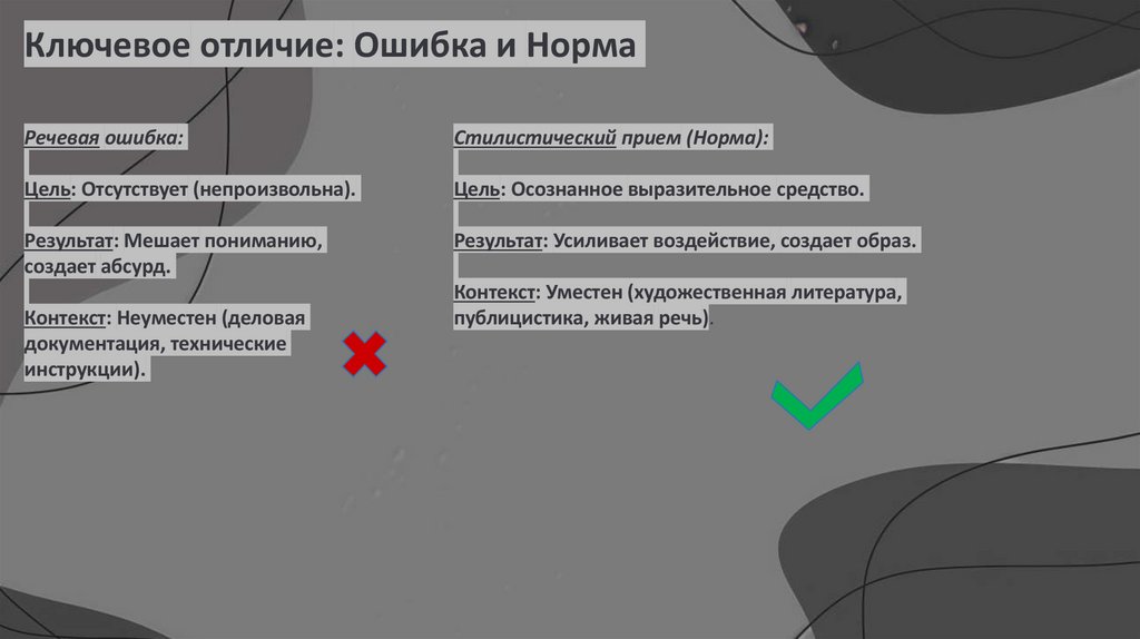 Ключевое отличие: Ошибка и НормаРечевая ошибка:
