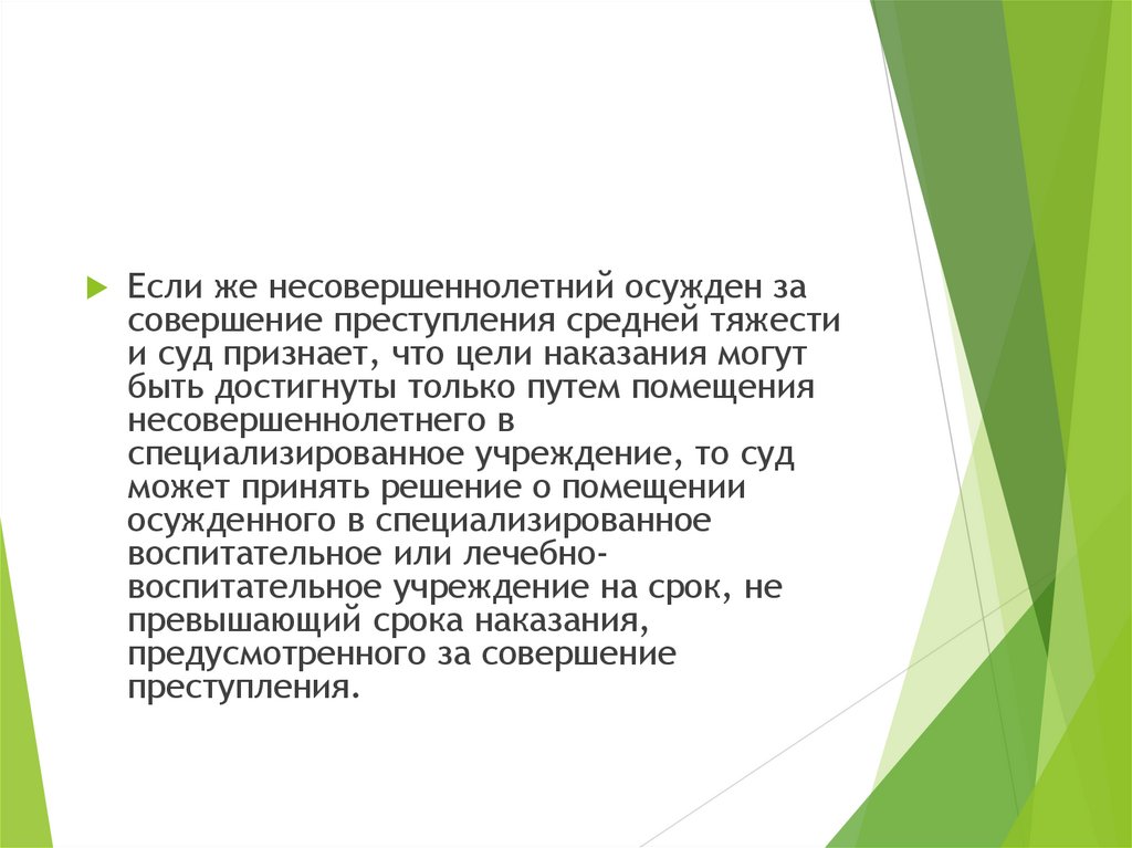 Если же несовершеннолетний осужден засовершение преступления средней тяжести