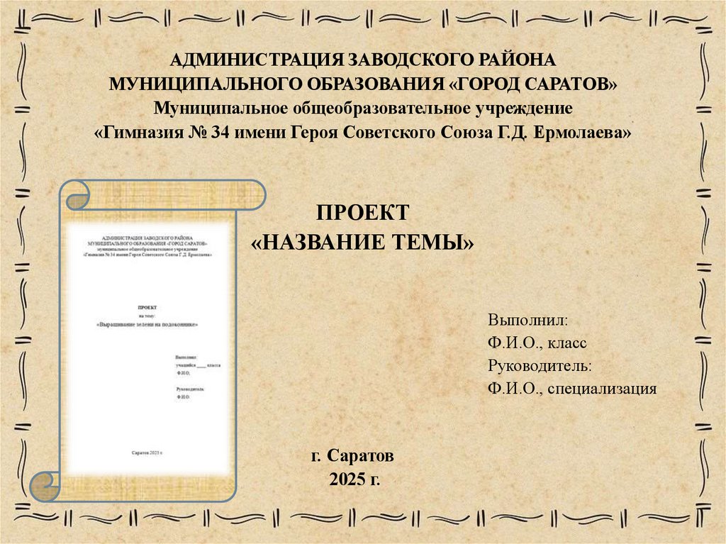 «Гимназия № 34 имени Героя Советского Союза Г.Д. Ермолаева»