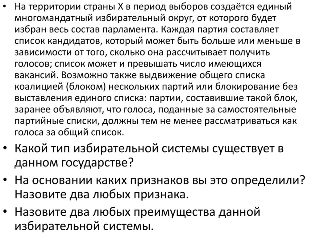 • На территории страны Х в период выборов создаётся единыймногомандатный избирательный округ, от которого будет