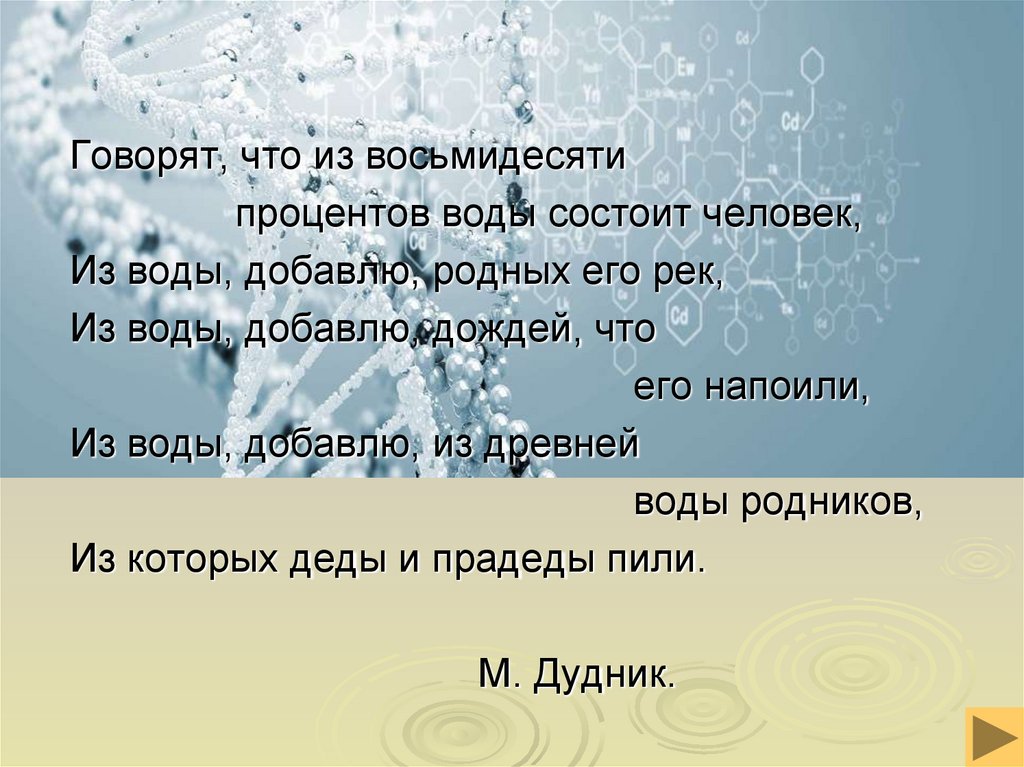 Говорят, что из восьмидесятипроцентов воды состоит человек,
