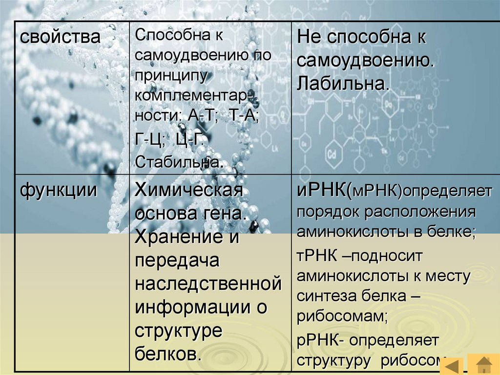 молекула, а иРНК и белок – одноцепочечные молекулы. Кроме того, нуклеиновые кислоты состоят