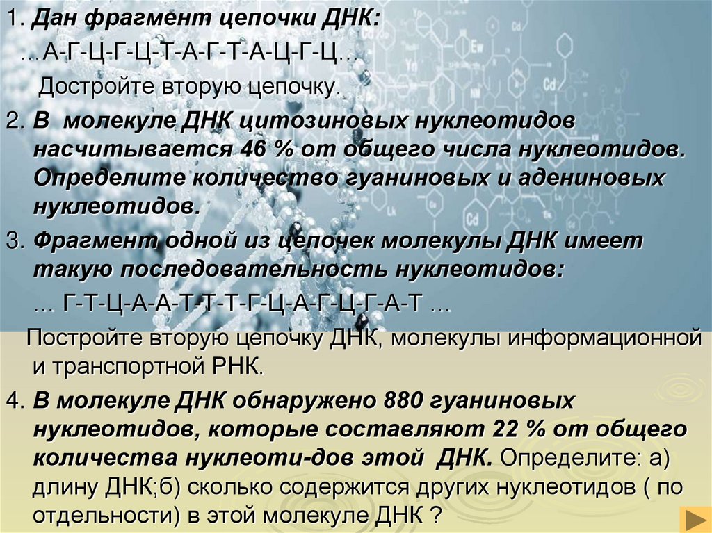 Постройте вторую цепочку ДНК, молекулы информационной