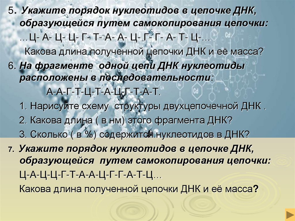7. Укажите порядок нуклеотидов в цепочке ДНК,