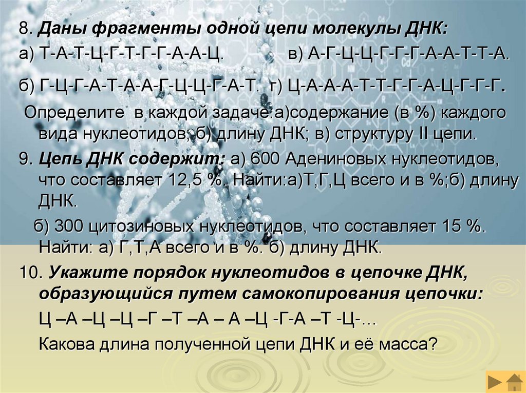 вида нуклеотидов; б) длину ДНК; в) структуру II цепи.