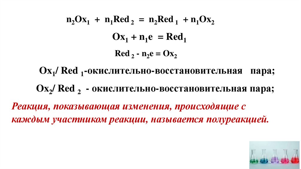 n2Ox1 + n1Red 2 = n2Red 1 + n1Ox2Ox1 + n1e = Red1