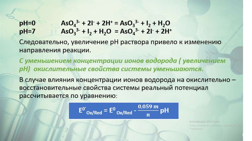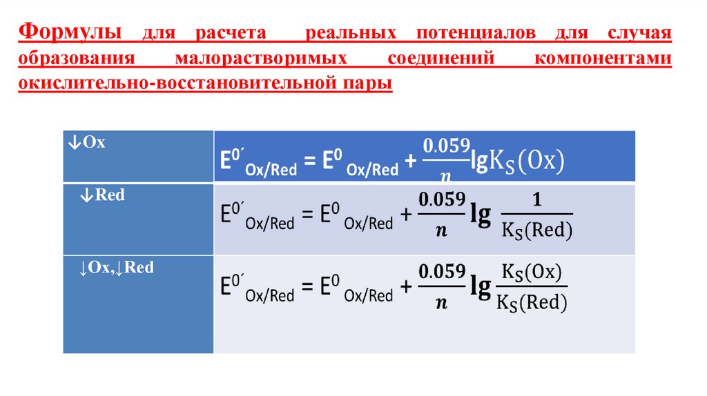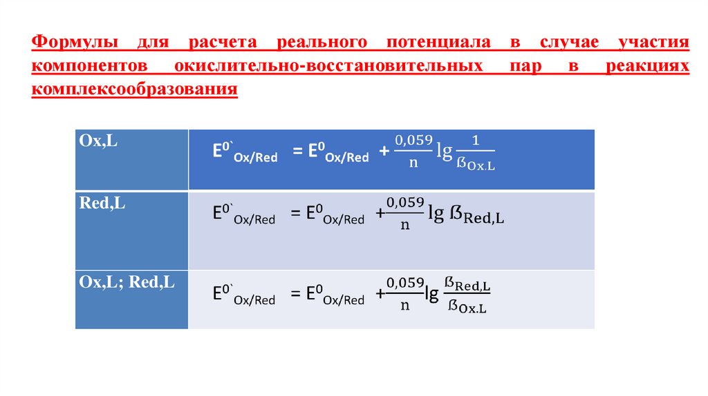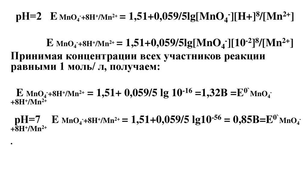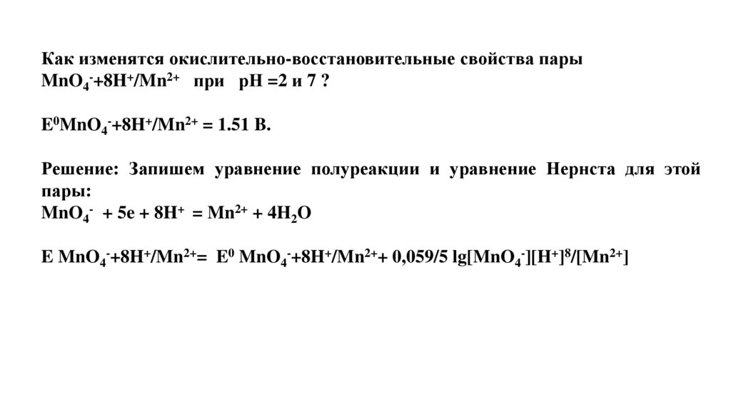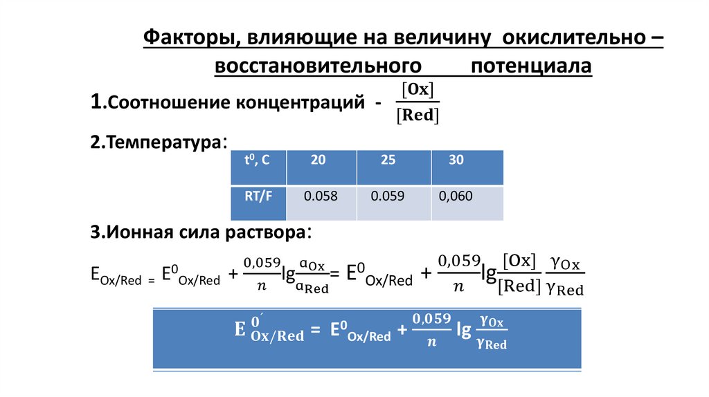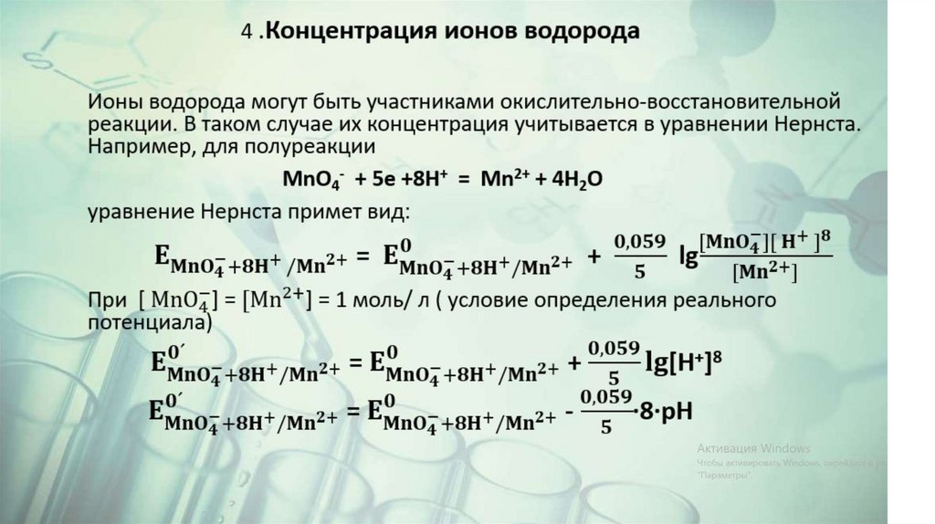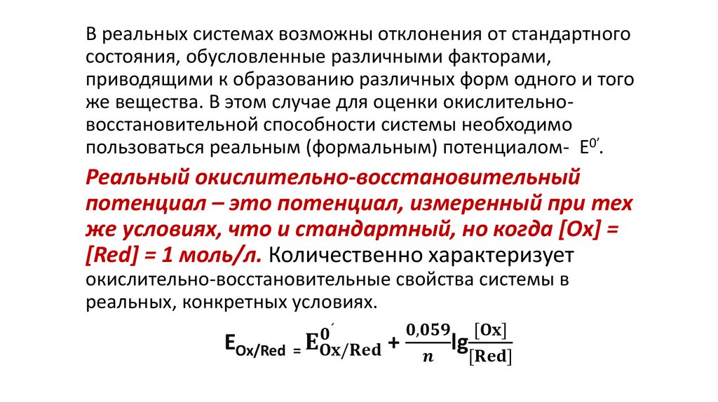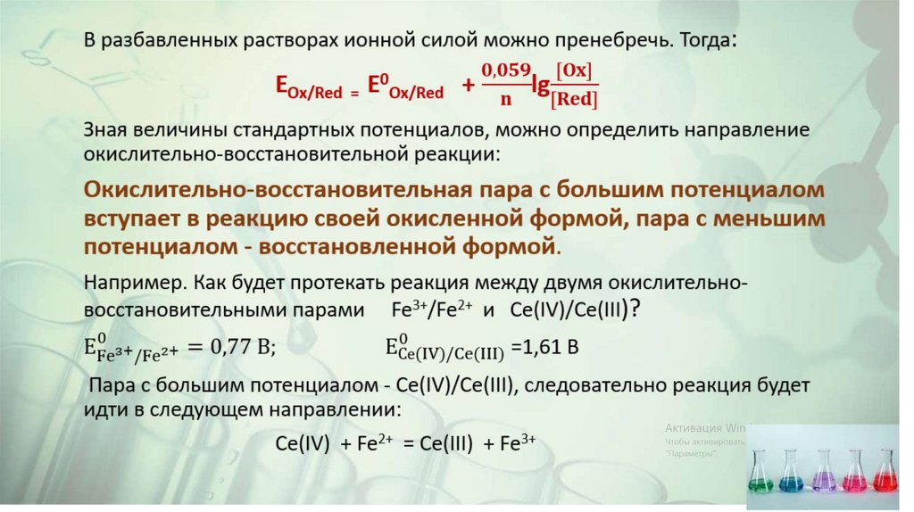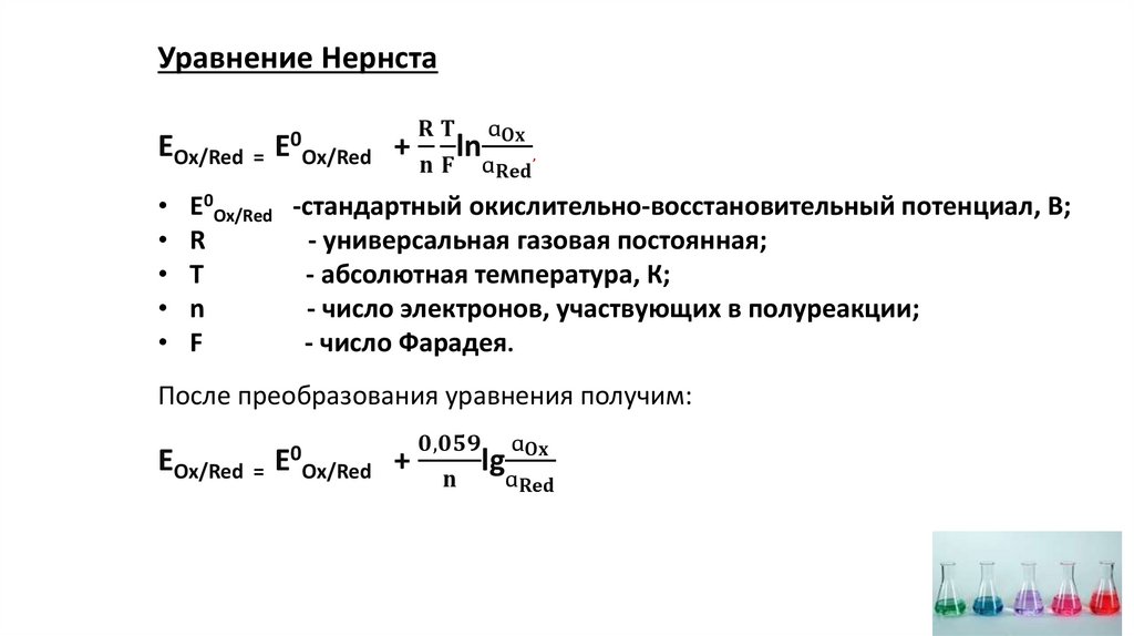 Уравнение НернстаEOx/Red = E0Ox/Red