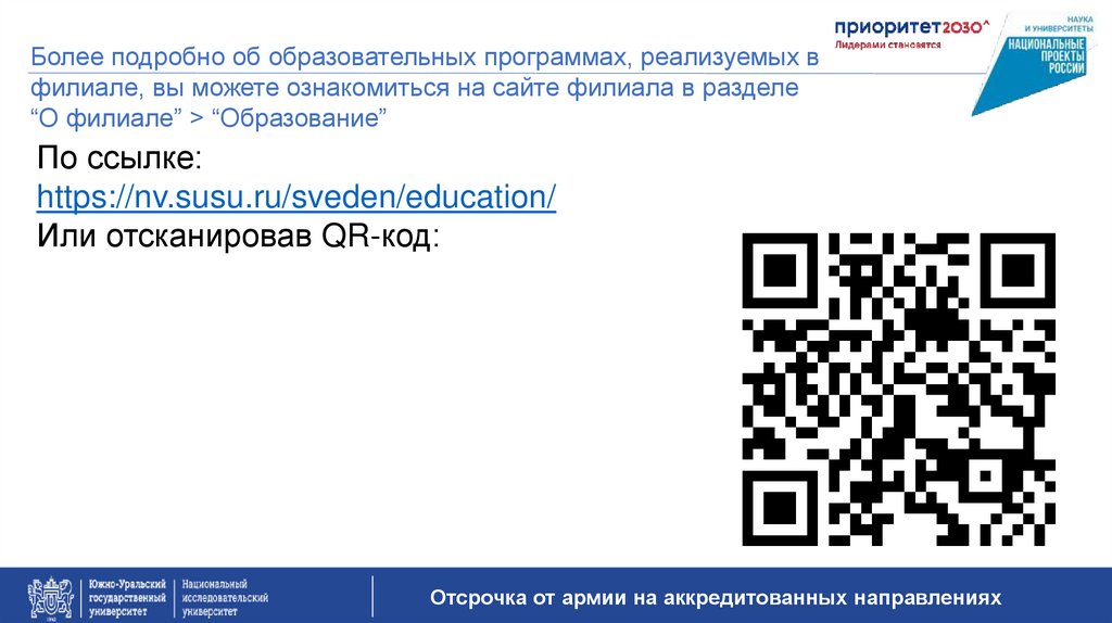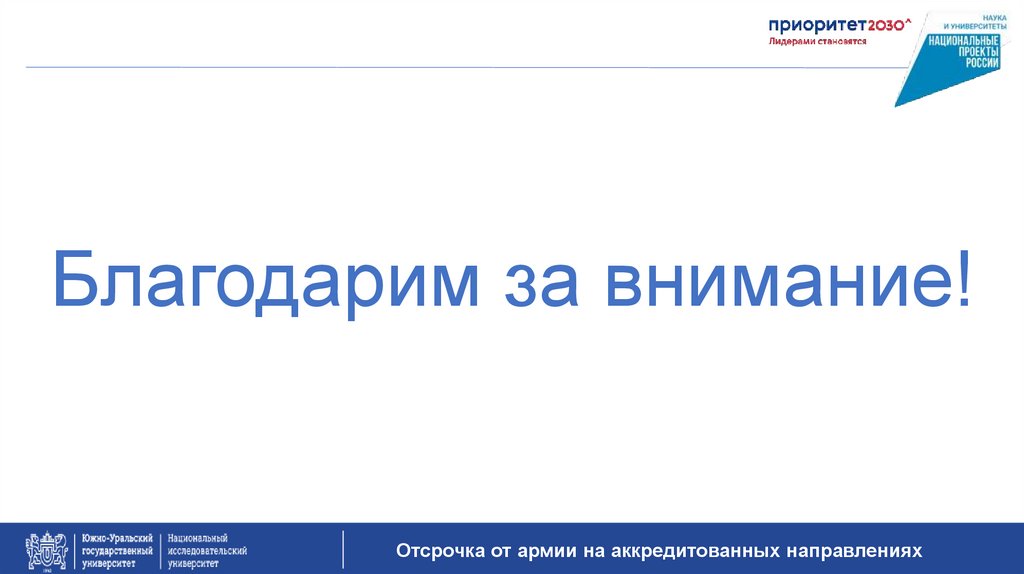 Благодарим за внимание!Отсрочка от армии на аккредитованных направлениях