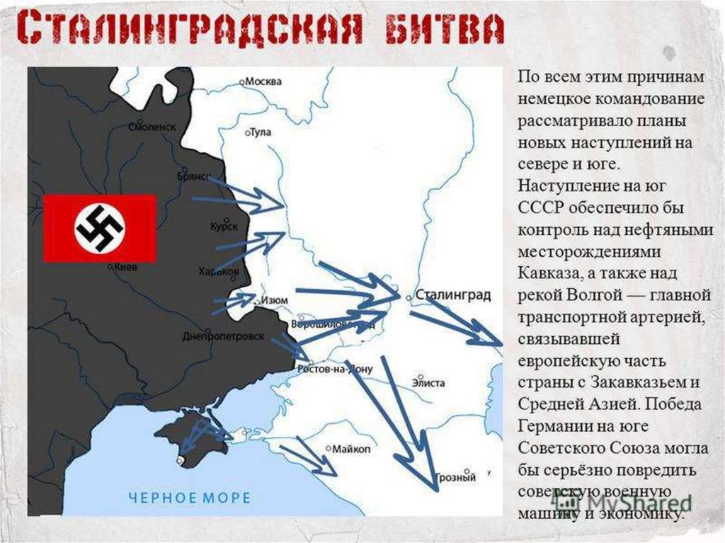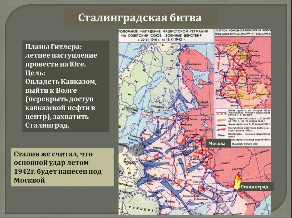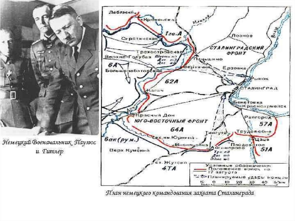 • В отличие от советских планов, немецкое наступлениена Сталинград являлось составной частью комплексной