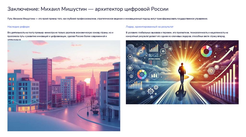 Заключение: Михаил Мишустин — архитектор цифровой РоссииПуть Михаила Мишустина — это яркий пример того, как глубокий профессионализм, стратегическое видение и инновационный подход могут трансформировать государственное управление.