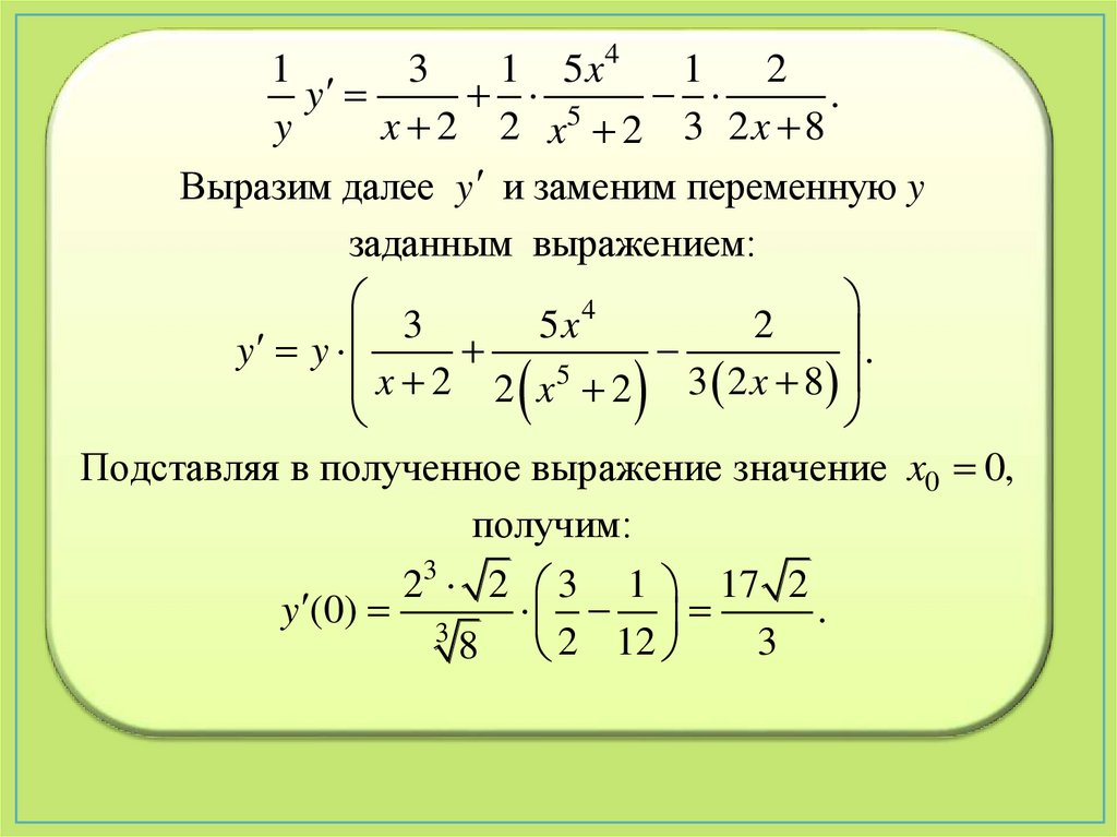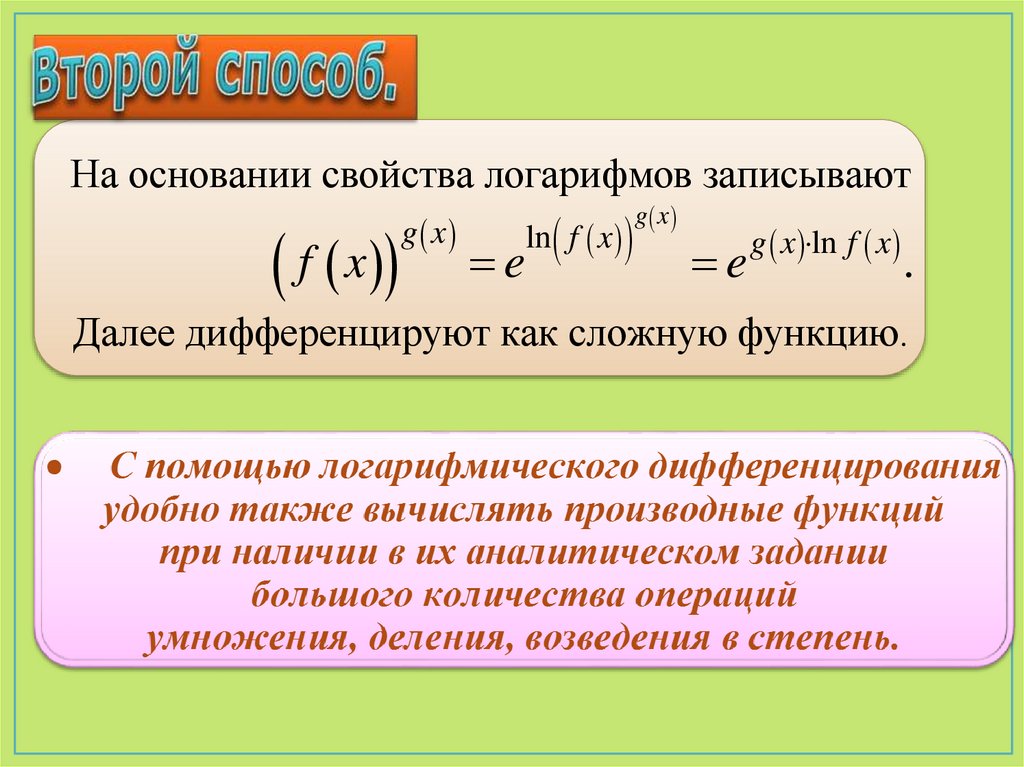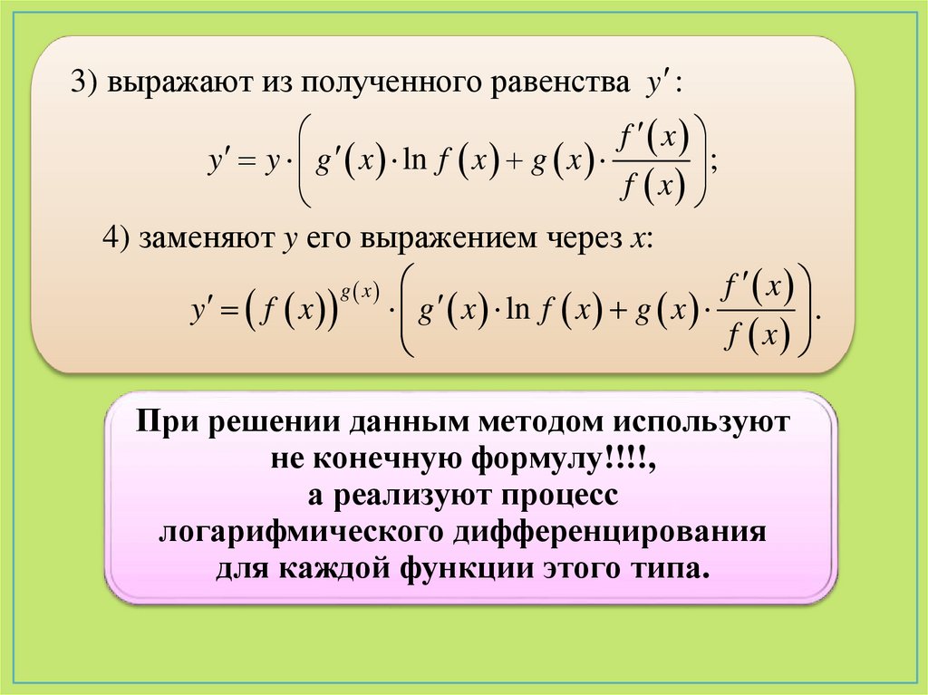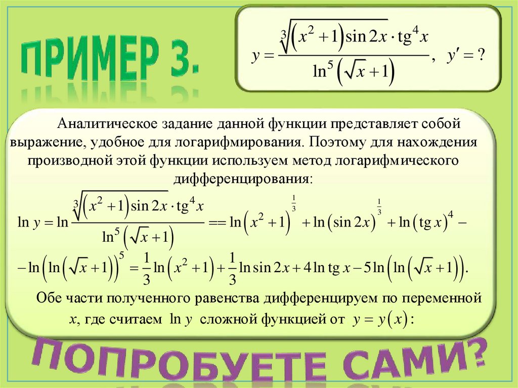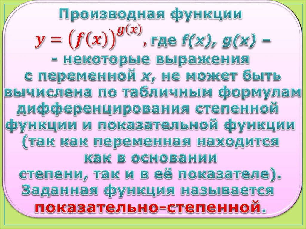 1. Найдите производную показательно-степенной функции,используя правило логарифмического дифференцирования: