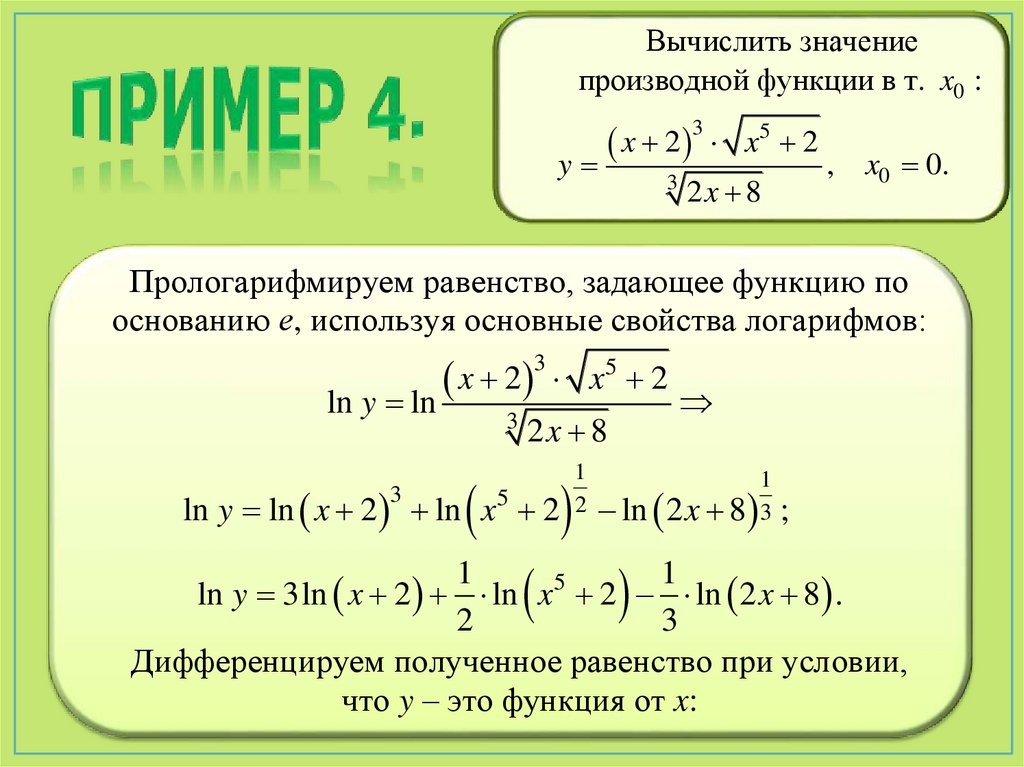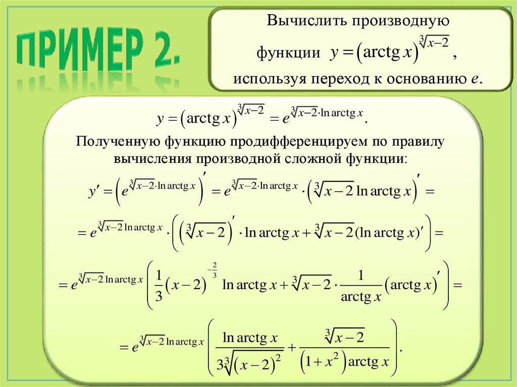 4. Вычислите производную показательно-степеннойфункции, перейдя к основанию е:
